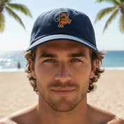 The cap is made from a high-quality, comfortable navy Yupoong dad hat, known for its relaxed fit, curved brim, and adjustable strapback closure. Whether you're heading to a show, lounging at a festival, or just keeping the sun off your face, this hat brings just the right amount of heady style to any outfit.
