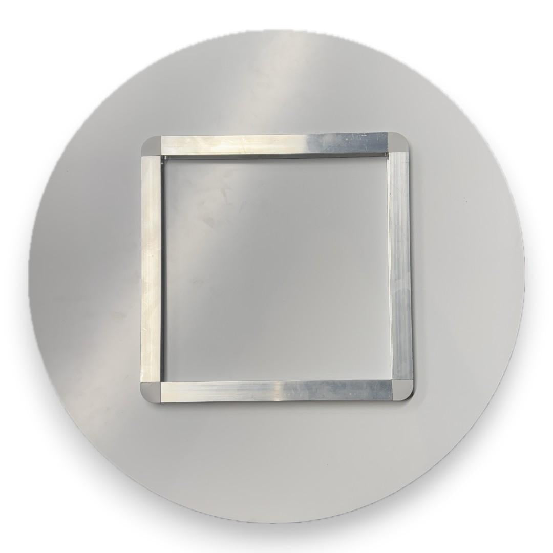 A 27.5-inch die-cut circle, UV printed on onyx gloss-laminated aluminum.