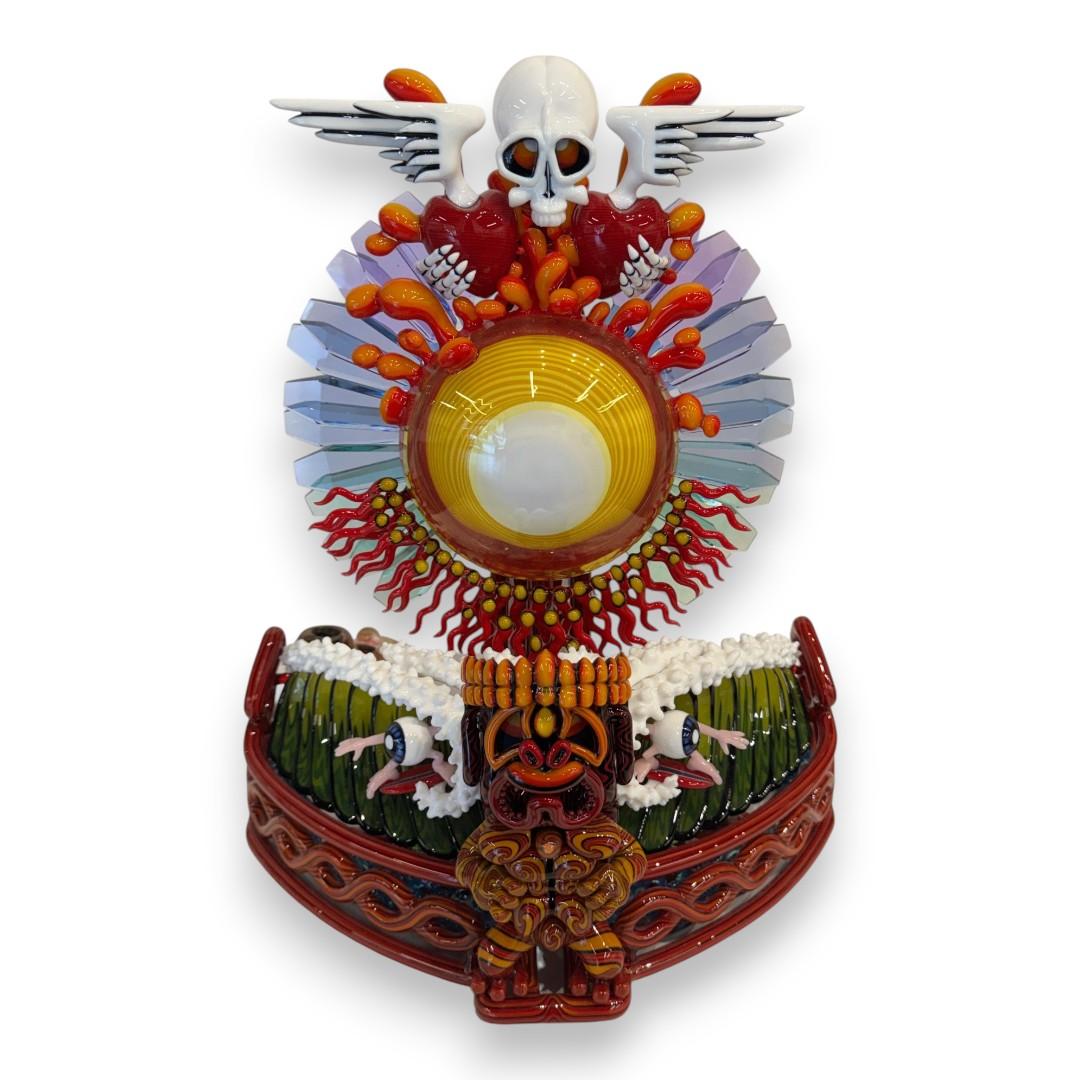 From our iconic "Glass Is Dead: A Grateful Pipe Exhibition" Curated by BANJO event that took place on January 31, 2026. The poster features the EPIC functional glass sculpture BANJO created for our 60 Years Of The Grateful Dead Retrospective that took place on December 6th, 2025. The sculpture was based off of Rick Griffin's iconic "Hawaiian AOXOMOXOA" pen and in drawing, which was also featured in our GD60 exhibition.