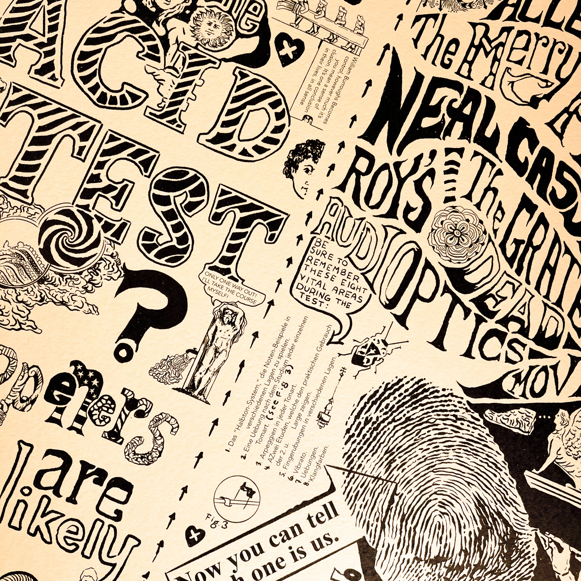 Bring home a piece of psychedelic history with this Can You Pass the Acid Test? throwback poster, featuring original artwork by Paul Foster, a core member of Ken Kesey’s Merry Pranksters. Foster’s design first appeared in the mid-1960s on the handbills and posters promoting the legendary Acid Tests - multimedia happenings where the Grateful Dead provided the soundtrack to an explosion of light, film, and free-form chaos.