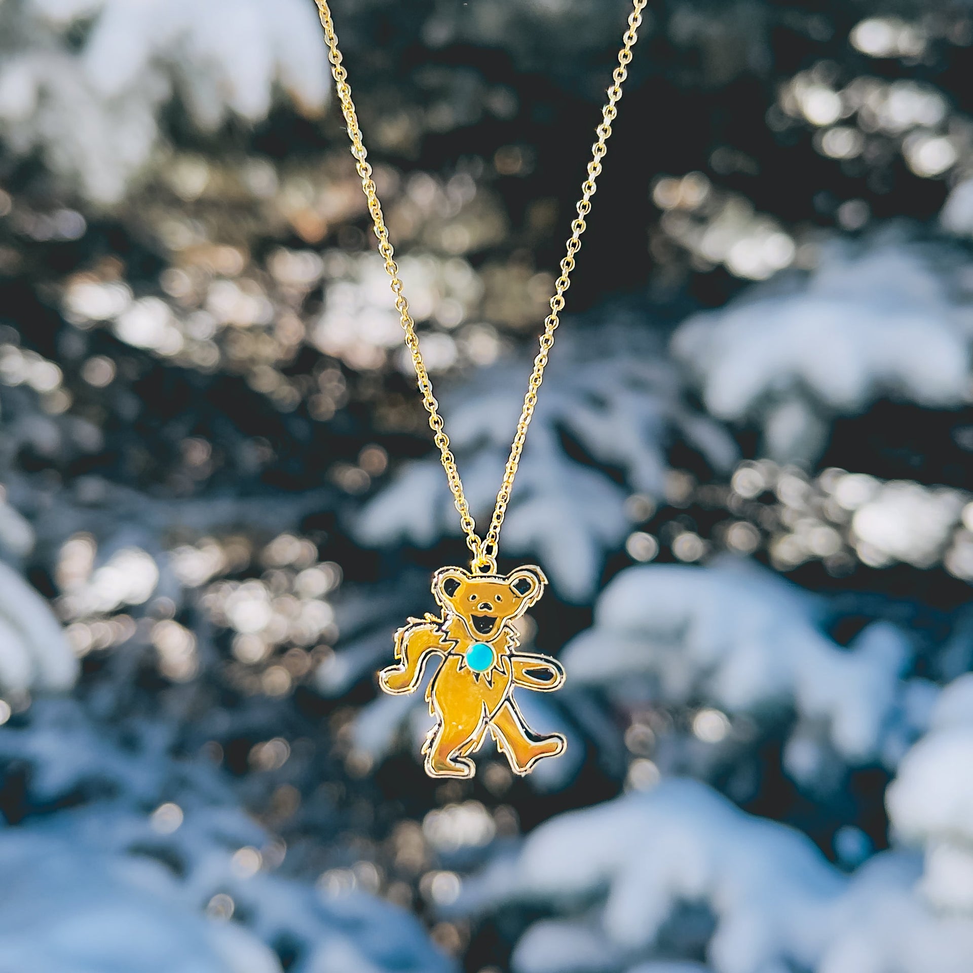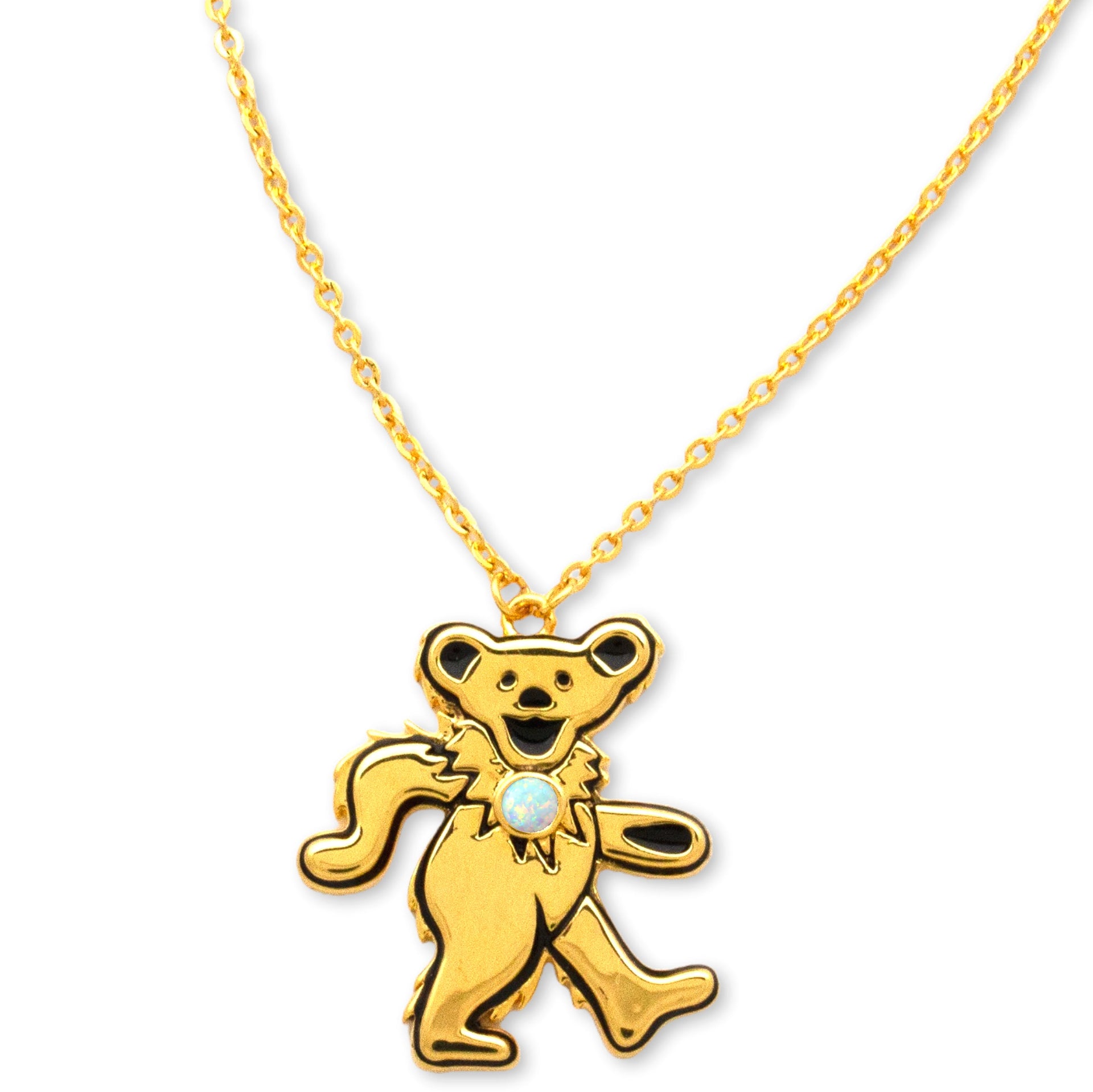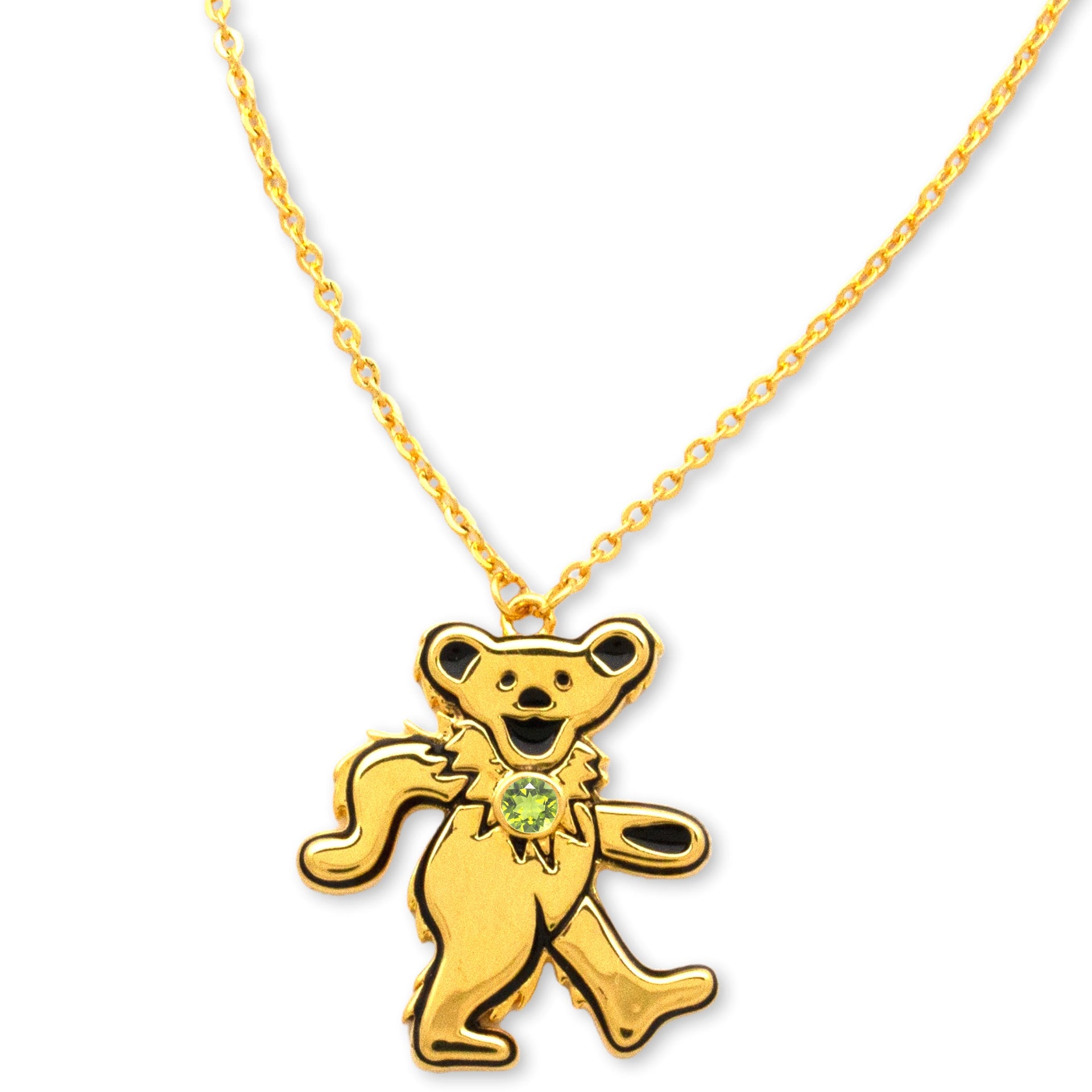 Grateful Dead Dancing Bear Birthstone Necklace | Gold